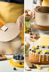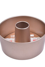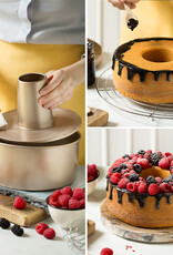 Hoogwaardige metalen vorm met antiaanbaklaag, een materiaal dat maximale slijtvastheid en absolute antiaanbaklaag garandeert. Ideaal voor zoete en hartige bereidingen met perfecte vormen. Eén vorm, 2 toepassingen; één ronde met losse bodem, en één voor het maken van chiffoncakes met een buisje. Ook leuk voor een tulband cake met die opening in het midden.